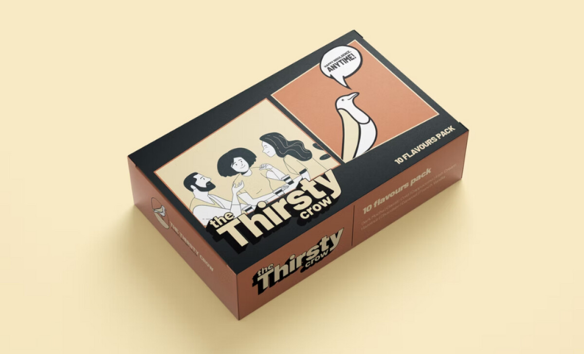 A compelling aspect is the packaging's storytelling approach, drawing from the fable of the clever crow. This narrative mirrors the brand's message about creativity and persistence. Such playful illustrations invite consumers to connect more deeply with your products, extending the experience beyond the product itself and capturing the brand's essence.