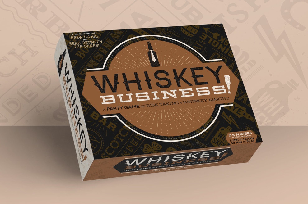 The rustic color palette creates a welcoming canvas that invites curious minds to try out the game. The vintage details are also reminiscent of traditional signage in bars and labels in alcoholic beverages, tying in with the whiskey concept.