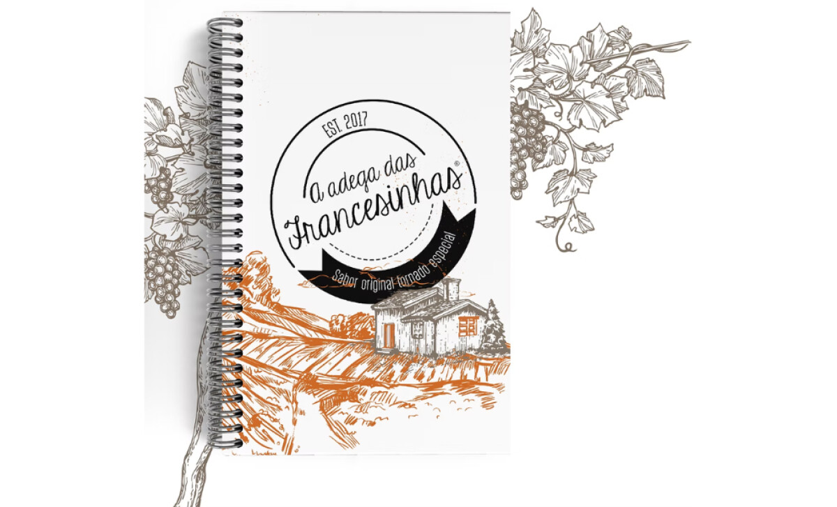 These include grape vines curling across the margins, panoramic countryside sketches, and a rustic house nestled in rolling hills on the cover.