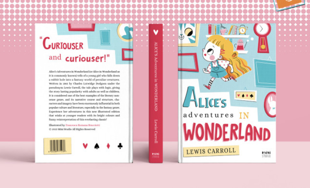 Italian designer Francesca Romana Bracciotti's rendition of "Alice in Wonderland" for the 2023 Book Project is a refreshing take on a classic tale. The cover boasts fun typography, vibrant illustrations, and a youthful interpretation of the beloved story.