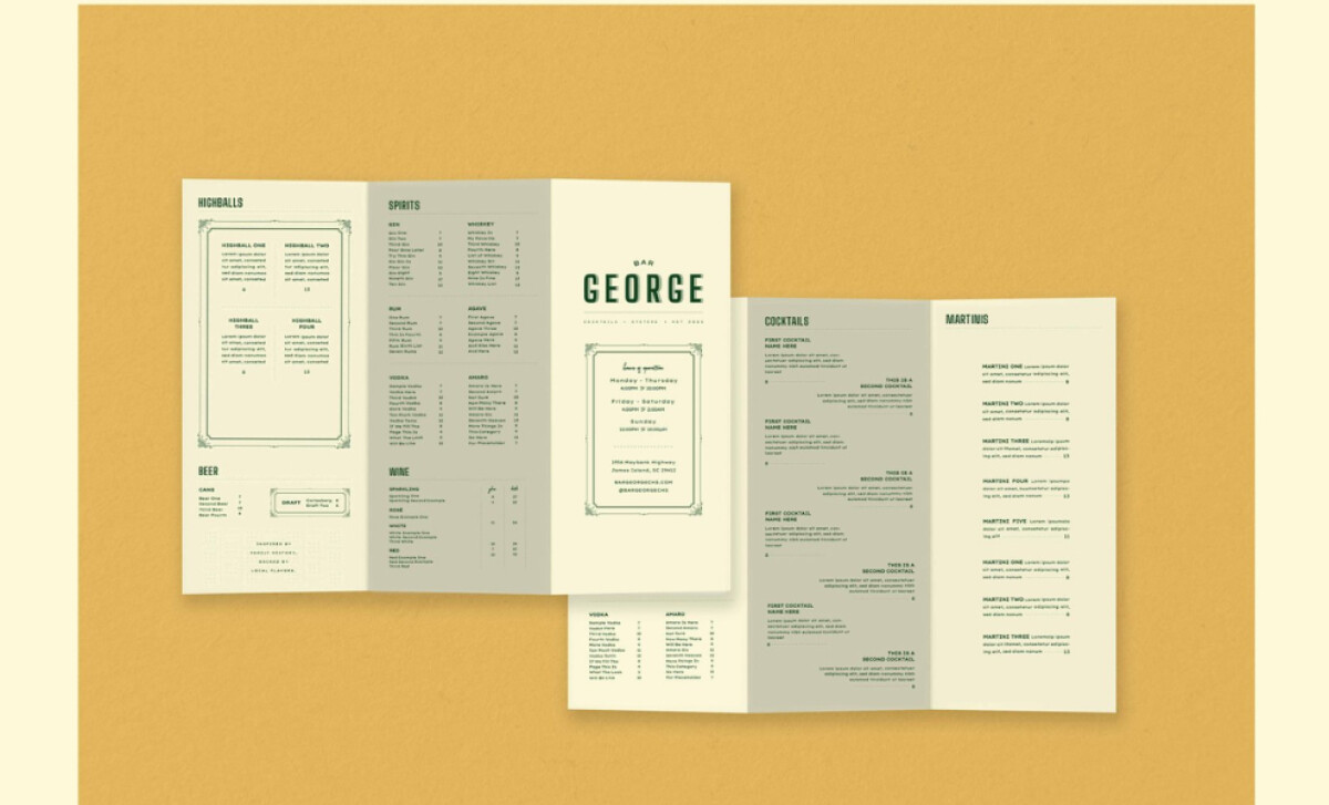 - Typography: I like how the bold, retro type instantly grounds the brand in nostalgia. The mix of structured and playful fonts reflects Bar George’s laid-back yet curated atmosphere.
