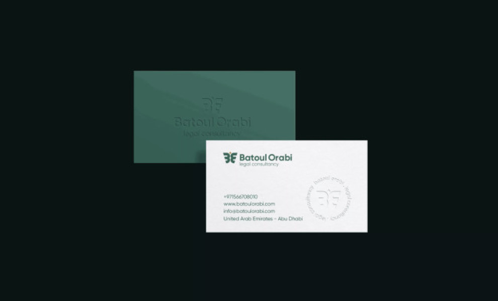 For the UAE-based legal consultant Batoul Orabi, the design agency WIDER developed a business card design that’s clean and straightforward, making it a cohesive asset for the brand.