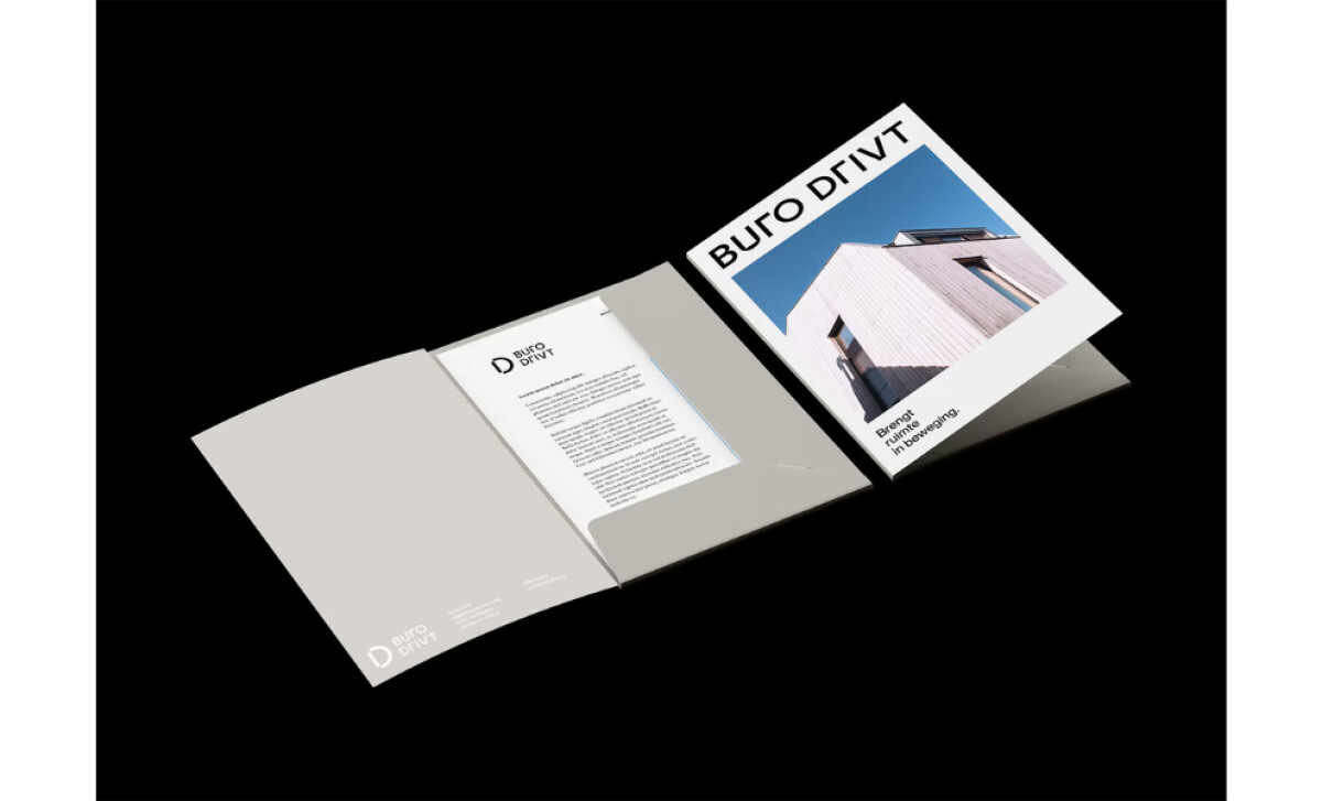 - Layout: The folder, cards, and printed materials rely on strong spacing and a steady grid. This creates a sense of order that mirrors the agency’s focus on precision and conscious building.