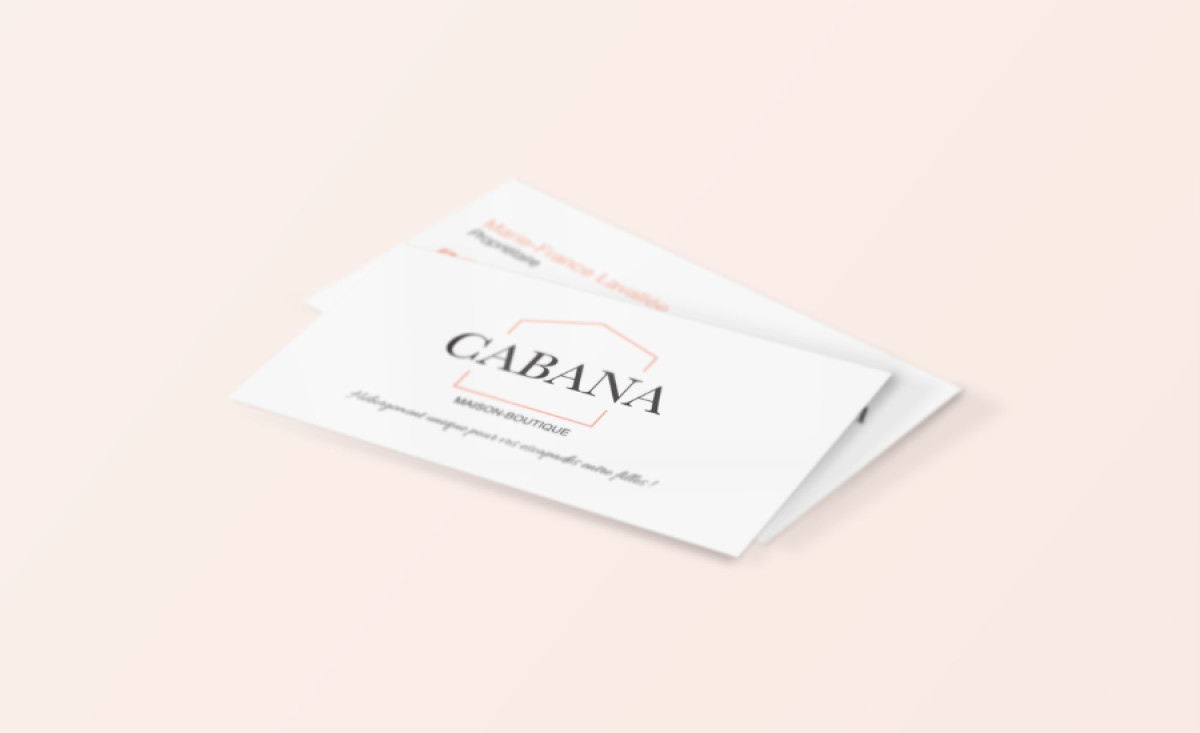 This business card design’s sophistication is further enhanced by the typography: The Cabana name is rendered in an elegant, high-contrast serif font, while supporting text like Maison Boutique uses a clean, light sans-serif — a perfect pairing that ensures clarity while upholding the minimalist standards it sets.