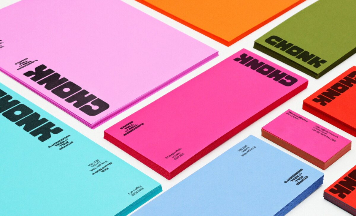 Chonk hits like a sugar rush. Its chunky wordmark grabs attention on impact, and its secondary font of Pangram Pangram’s Agrandir typeface adds just the right mix of punch and personality.