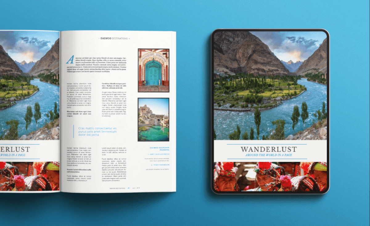 Debby Lee Designs' work for the DAEWOO DESTINATIONS magazine captures the allure and vibrancy of Pakistan through visually captivating elements.