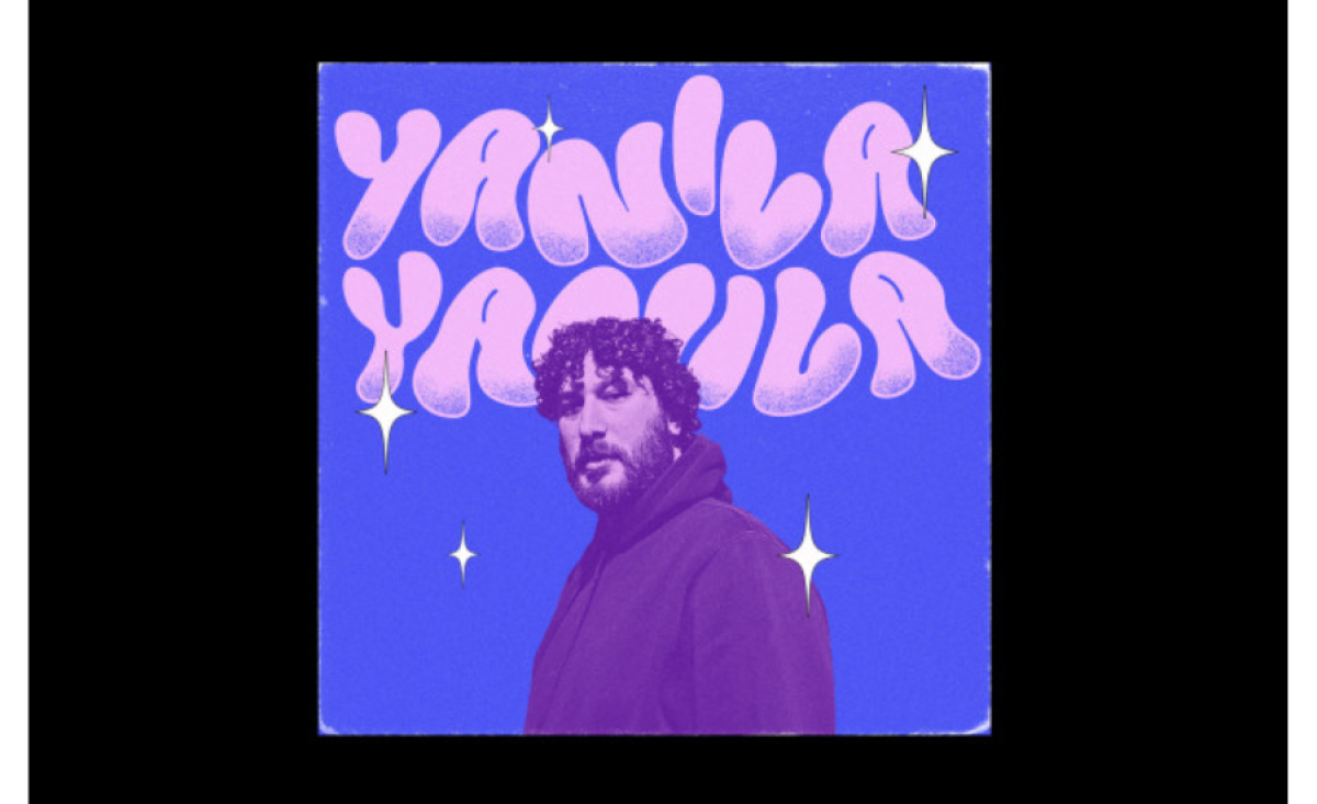 The cool colors are decorated with several white sparks contrasting the design. The artist’s profile is printed below the text, taking up the artwork's center. It's presented with a duotone effect that helps the design get a more holistic glow.