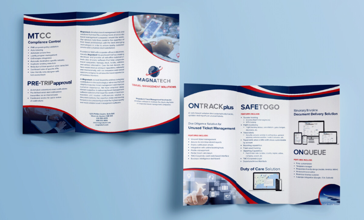 For Magnatech, a global travel technology company, Marianne De Bonis created a suite of professional services print brochures and leaflets. It projects an image of innovation and stability through its dynamic graphics and structured information design.