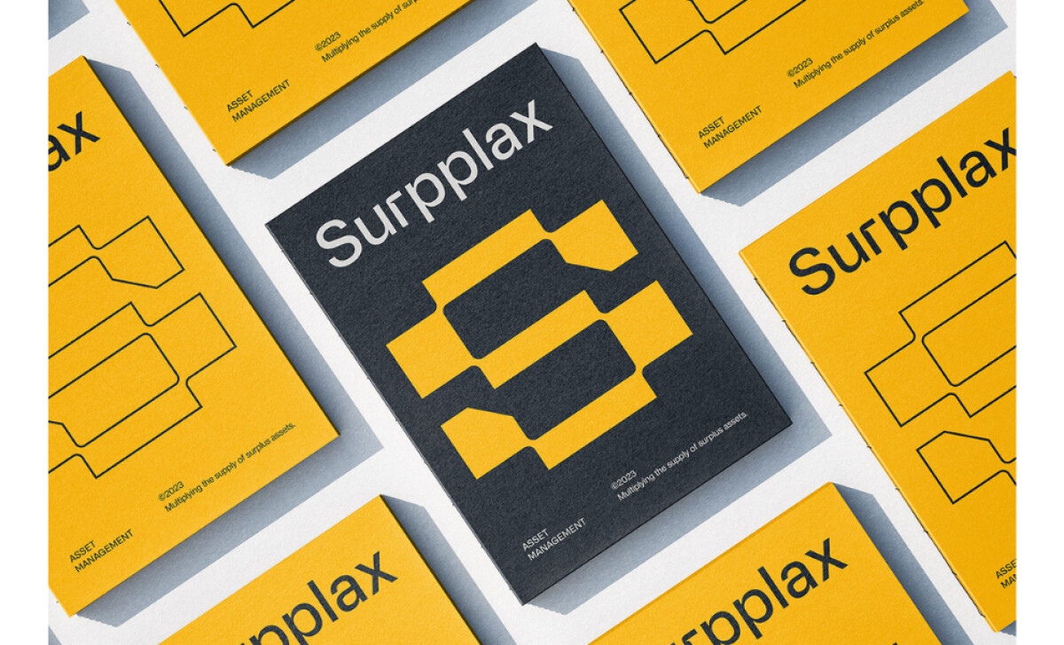 Eich Studio created the print identity for Surpplax, a platform connecting companies with surplus assets. The name merges "surplus" and "x" to represent multiplication, which inspired a bold geometric symbol conveying efficiency and structure.
