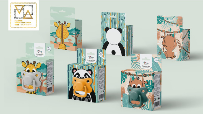 This is designer Kata Roman’s priority in designing the packaging for this baby pacifier brand. Safety and sterilization are essential factors in this design, so you cannot see the silicone teat exposed in any way.