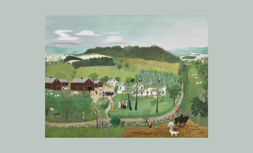 Grandma Moses followed a similar path, painting memory-driven landscapes with flat perspective and vivid color well into her later years.