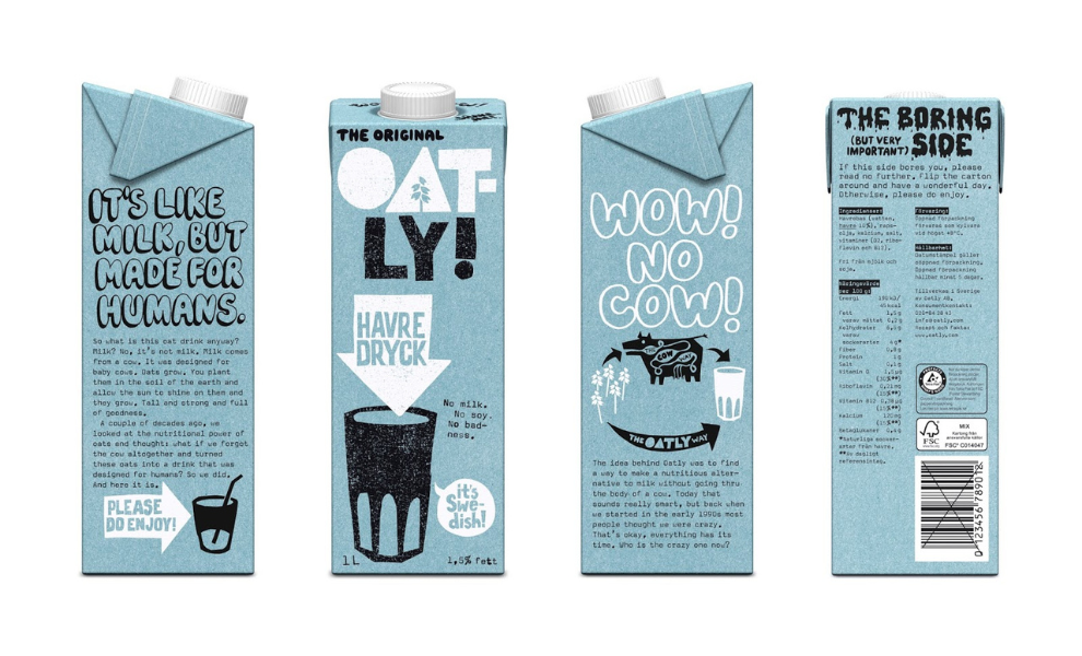 While other milk brands use perfect photos of splashes and farms, Oatly uses doodles, which shows they’re a brand that values personality over polish.