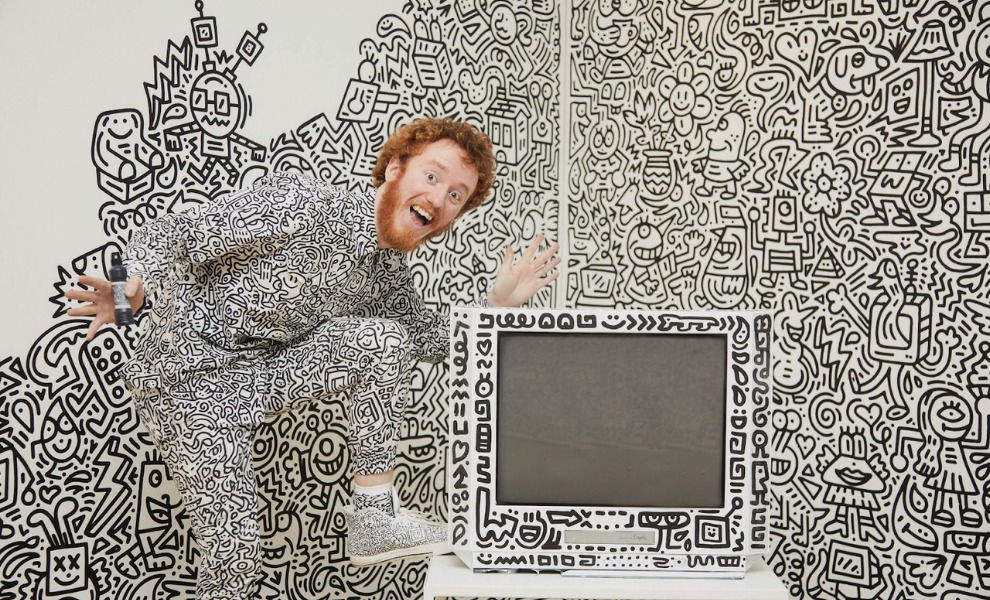 No conversation about naive design in 2026 feels complete without Sam Cox, known globally as Mr. Doodle. He built a career from obsessive drawing, turning dense, hand-drawn compositions into both fine art and commercial work.
