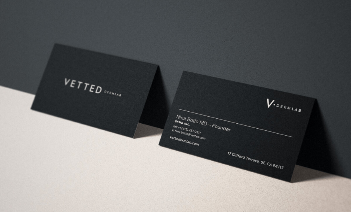 Studio-Child’s business card for Vetted Dermlab stands out for its minimalist, understated luxury.