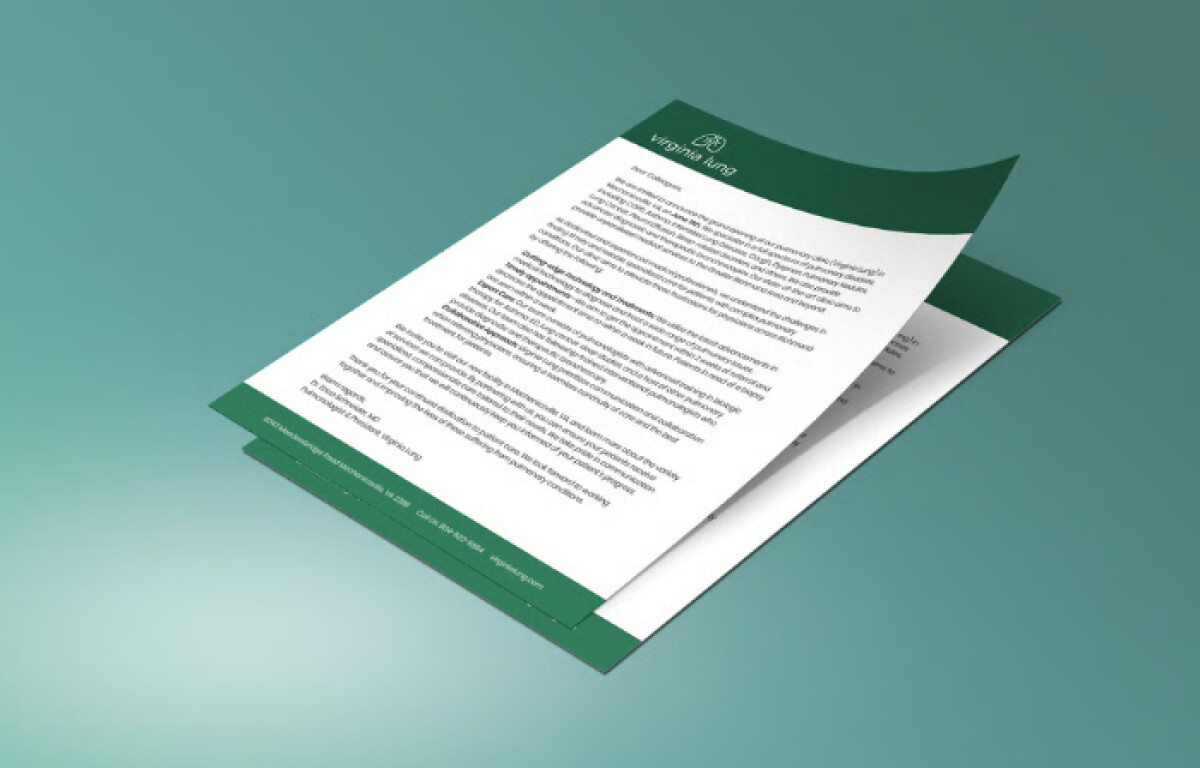 The Virginia Lung print system succeeds by using restraint, hierarchy, and calm visual structure to support patient understanding.