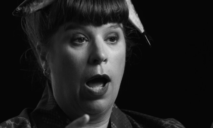 - Monochrome interviews paired with vivid studio footage