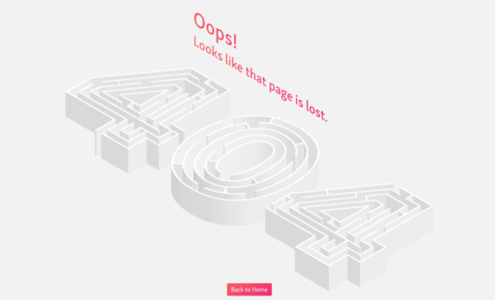 404 is presented as three separate mazes with big walls forming the numbers. It's a clever symbol of a visitor lost in a maze.