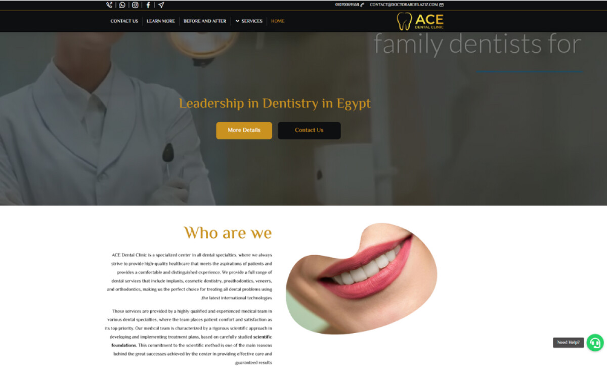 The ACE Dental Clinic website, a project by Remal Digital Solutions, presents the work of cosmetic dentistry expert Dr. Abdelaziz. The design is a sophisticated and professional digital platform that communicates luxury and trust. It successfully creates a welcoming interface that reflects the clinic's high standards of care.