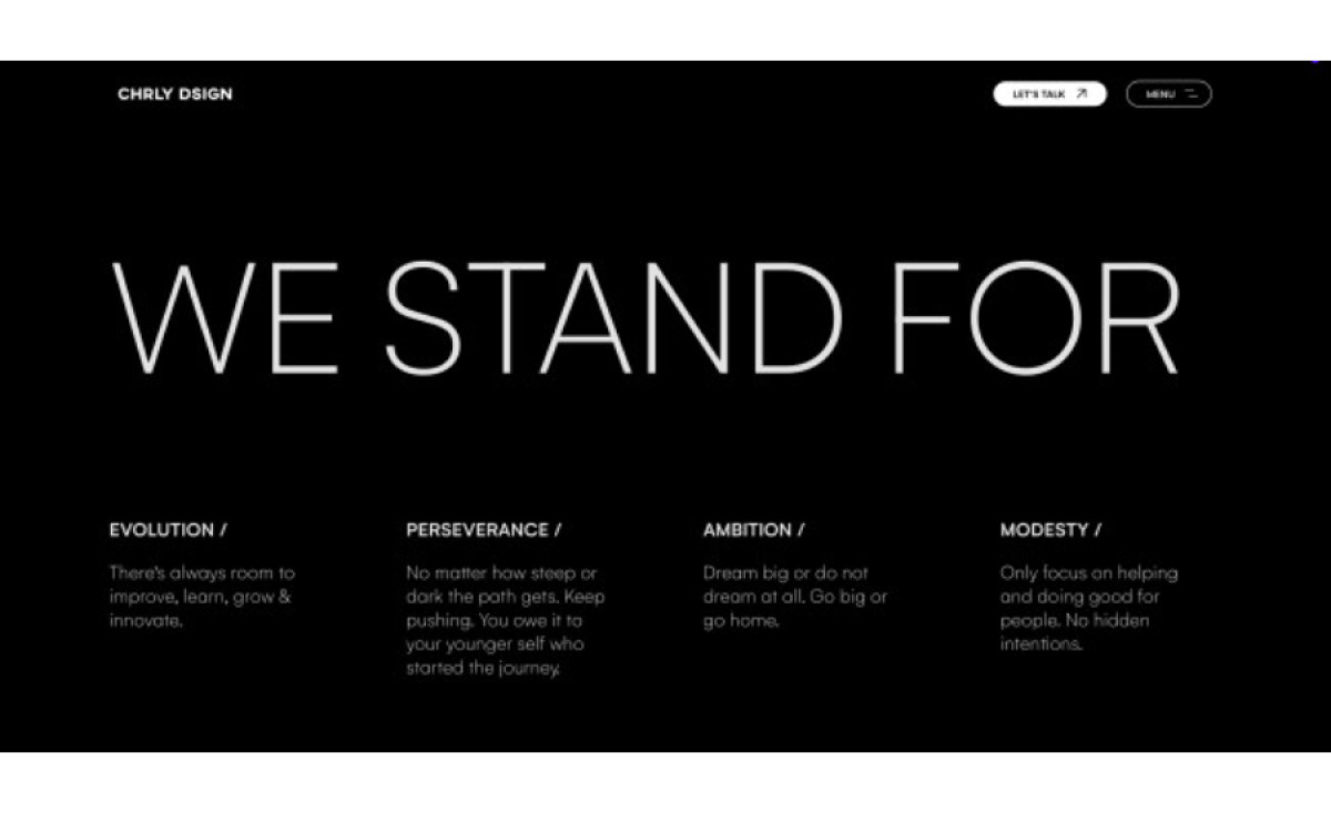 CHRLY DSIGN®'s About page isn't your typical About page – it's simple and monochromatic yet impactful.