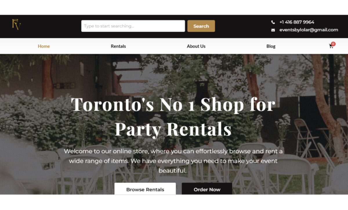 Eventsbylolar Rentals achieves this balance through elegant type choices, warm metallic accents, and a browsing experience that feels structured and welcoming.