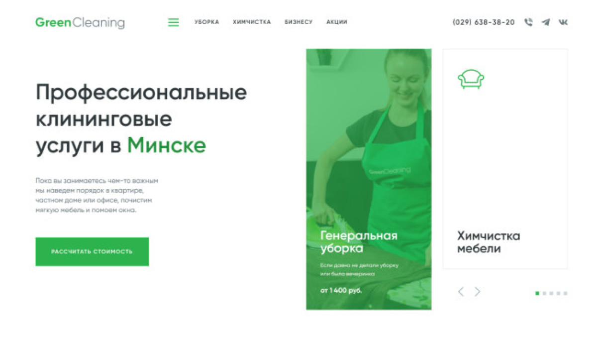 Octopance’s work for Green Cleaning, a Minsk-based cleaning company, represents one of the best modern websites with green elements. The design’s cleanliness plays into the industry and provides authority, while the multiple green elements add branding value.