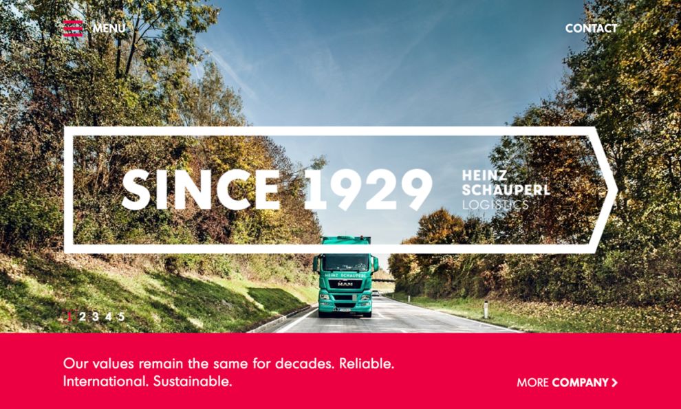 The duo of soft green and vibrant red create a stunning combination as the company’s color palette. The gorgeous combination is complemented by the use of brightly structured photographs that greet you the moment you come to Heinz Schauperl Logistics’ home page.