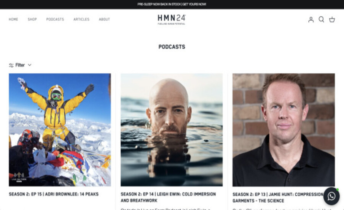 Making it to our list of the best podcast websites is HMN24's website by Web Optic.