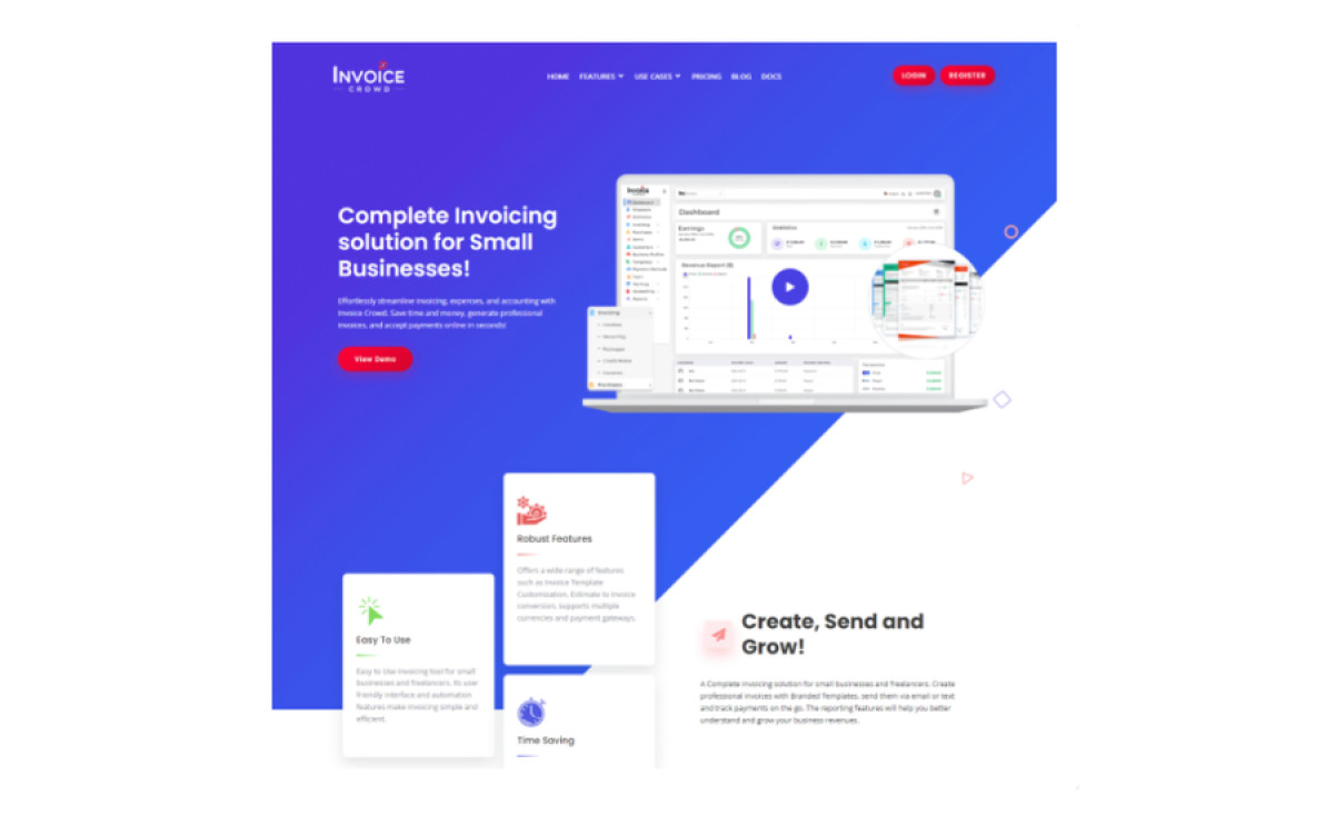Overall, Invoice Crowd's design is a testament to CodeCloudWeb’s expertise, blending aesthetic appeal with functional excellence. It’s a user-friendly solution for anyone seeking to optimize their invoicing processes.