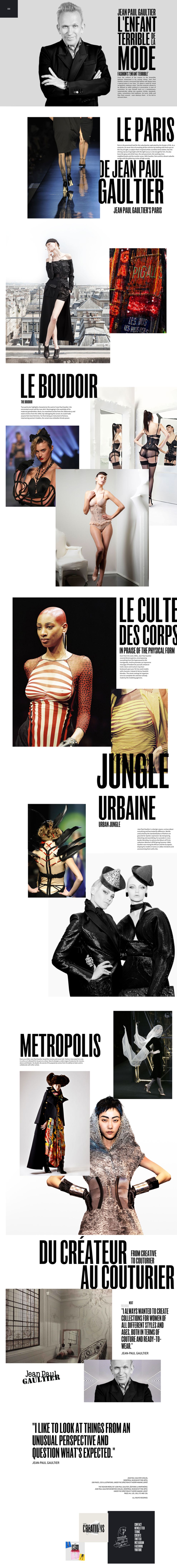Jean Paul Gaultier has a reputation as one of the most cutting edge names in fashion. The creative machine, formerly behind Hermes, struck out on his own in 2010 to make his own waves. A designer’s web presence should echo their aesthetic, but is it even possible to create couture web design?