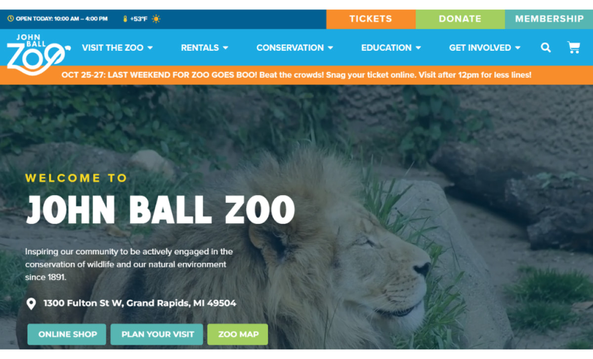 John Ball Zoo, Michigan’s fourth-most-visited cultural facility, needed a dynamic and engaging online presence aligned with its mission to inspire wildlife conservation. Intellectual Ninjas answered the call with a fun, educational website design that excites visitors.