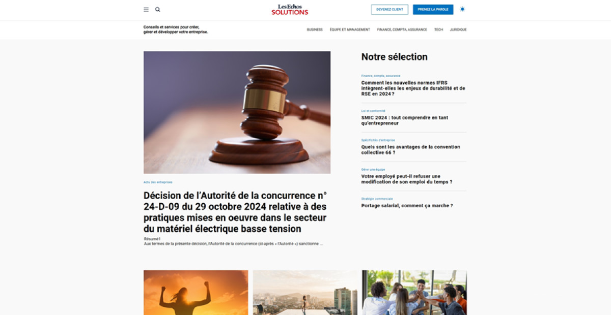 Overall, Les Echos Solutions' website demonstrates a high level of design sophistication, reflecting its commitment to empowering businesses. The collaboration with 148 agency has resulted in a visually appealing and highly functional platform tailored to its professional audience.