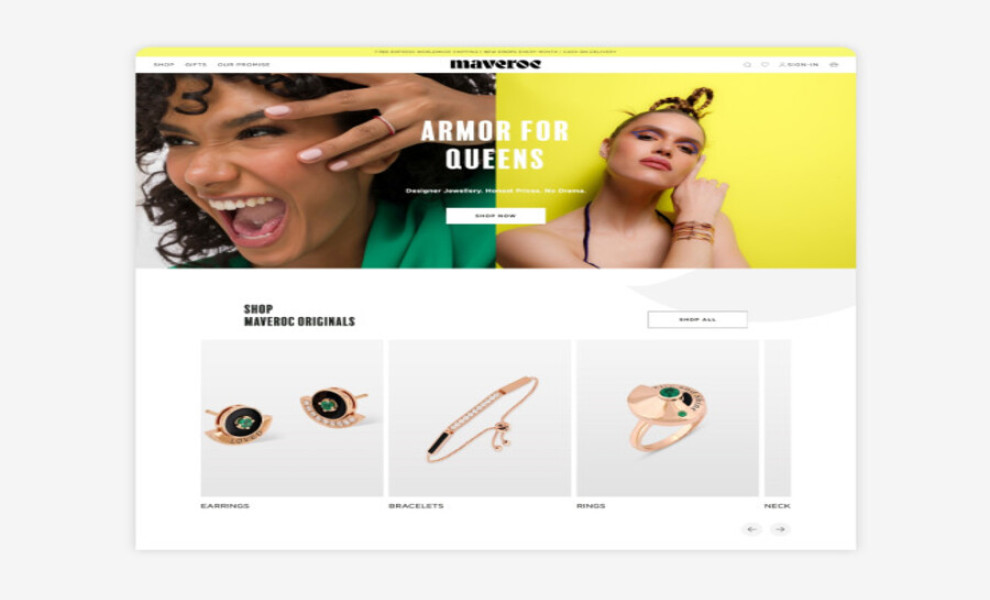The Maveroc Jewellery website design by Pixel Kicks highlights its pieces creatively through high-quality images and complementing visual elements.