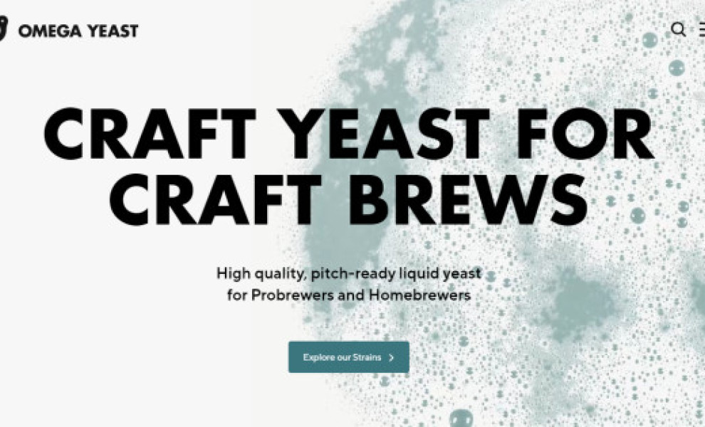 The homepage introduces Omega Yeast’s unique propagation methods and a short walkthrough of how they develop their products.