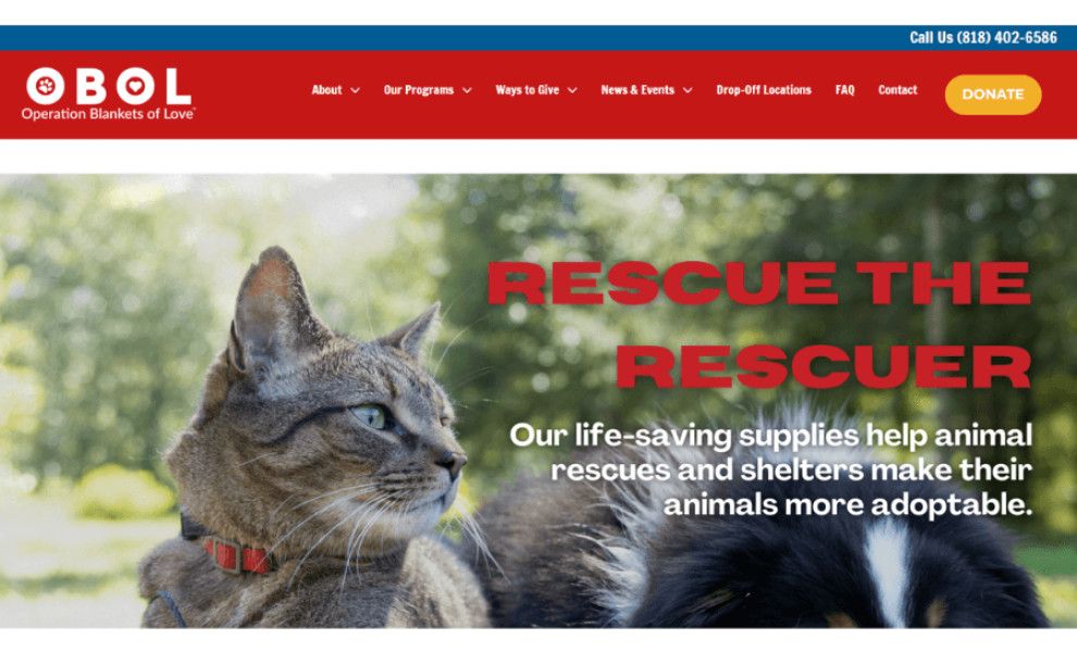 The bold and authoritative color scheme in the Operation Blankets of Love (OBOL) website design evokes feelings of warmth, comfort, and national pride, aligning with OBOL's mission to care for animals in need. Designed by Digital Executrix, the bold colors create a visually striking and memorable impression.