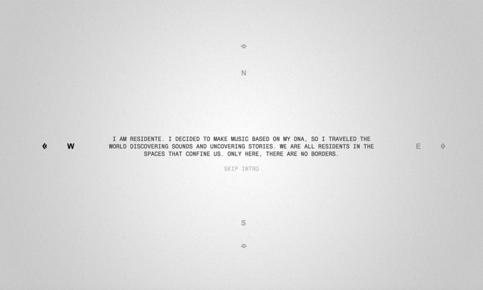 The intro page design reflects a compass that is aesthetically pleasing against the light-gray background. There is minimal content on the page with a quote in that Residente reads, allowing viewers to follow along. His voice is powerful, mystique and sultry, forcing users to want to explore the site.