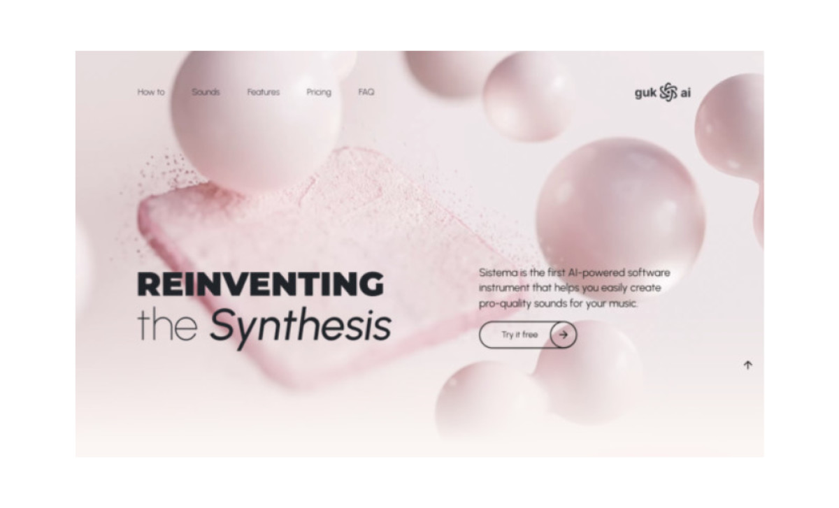 The Sistema for GUK AI represents the first software that generates samples for musicians. However, despite its revolutionary functionality, its visual identity was slightly outdated. So, Kovdra Design Bureau worked on the website redesign that matches the product’s modern functionality.