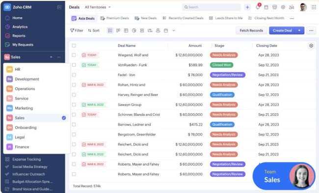 Zoho CRM stands out for its depth and flexibility. It’s designed for teams that want to shape the CRM around their workflow, rather than adapting their workflow to the software.
