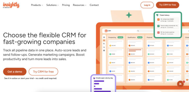 - Insightly: Best for client and project management