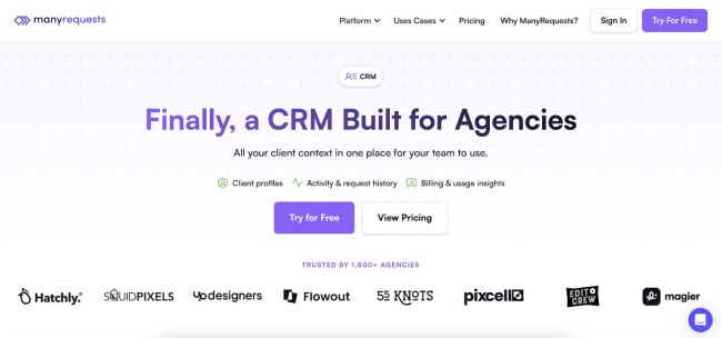 For web designers running retainers or productized services, ManyRequests functions as both a CRM and an operations hub. Business owners can track clients, manage requests, handle billing, and standardize workflows without stitching together multiple tools.
