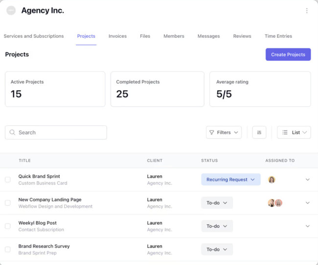 The platform is a natural fit for web designers offering website builds, maintenance plans, and ongoing design support. With its client-facing portal, you can centralize communication, intake forms, requests, approvals, and payments in one branded space.