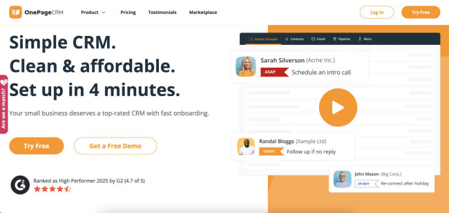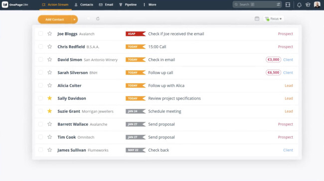 - OnePageCRM: Best for action-driven workflows