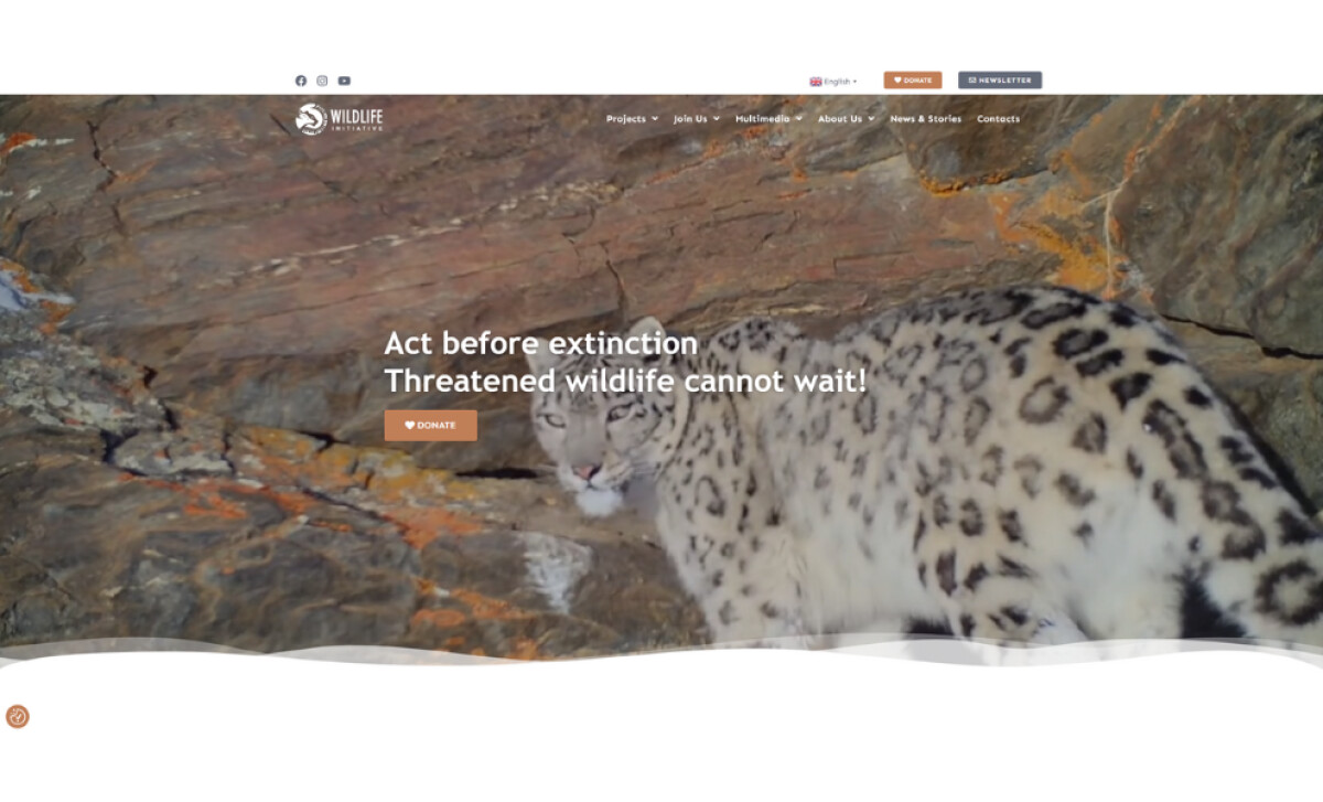 The website opens with a full-screen video of a snow leopard in its natural habitat. This choice provides an immediate emotional hook. It places the endangered animal front and center, which perfectly aligns with the organization's conservation values and creates a sense of urgency.